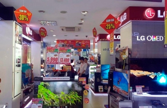 미디어마트 본사 빌딩의 1층부터 4층까진 가전 매장이고 5층부터 8층까진 사무실이다. 가장 많은 고객이 방문하는 1층엔 스마트폰과 TV가 진열돼 있다. 매장 가운데엔 LG전자의 OLED TV가 자리했다. 응옌 탄하이 미디어마트 마케팅전략팀장은 “TV는 삼성과 LG 제품을 가장 많이 찾는다”며 “전체 TV 판매량 중 삼성이 30~35%, LG가 25% 가량을 차지한다”고 말했다.