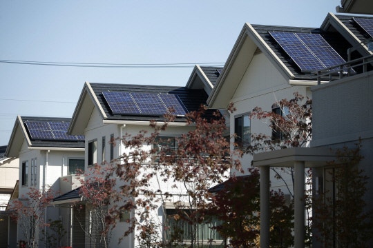 | 일본 아이치현 도요타시 주택에 태양광 발전 설비가 설치돼 있다. /사진제공=블룸버그통신 | |