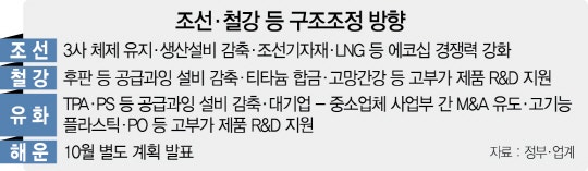 정부가 조선·철강·유화업종에 대해 인위적 통폐합을 하지 않고 자활(스스로 사업재편) 기업에 자금·세제지원 등을 하는 식의 구조조정 방안을 마련했다. 연구개발(R&D)과 인수합병(M&A)을 유도하기 위해 산업은행의 자금력을 활용할 계획이다. 정부의 이런 방침은 혹독한 구조조정으로 국내 최대 해운사인 한진해운이 법정관리라는 대수술을 겪은 데 따른 부담이 작용한 것으로 풀이된다.